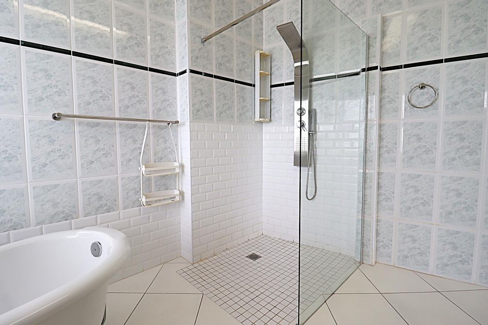 - Two guest bedrooms with built-in cupboards sharing a modern guest bathroom
