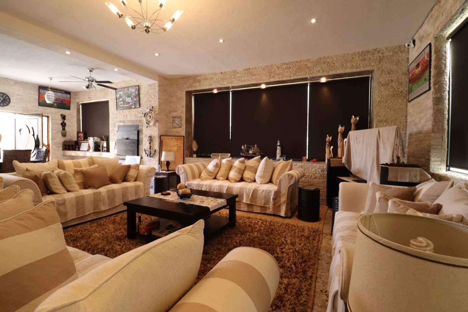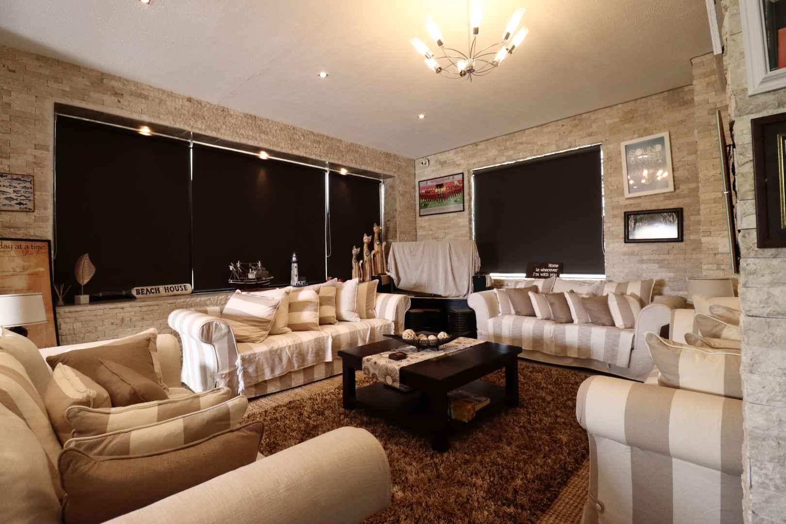 The ground floor offers a spacious guest lounge and dining space, an additional private lounge, and an indoor BBQ which is custom in most coastal homes. The small kitchen comes fitted with built-in cupboards, stove, and oven. This level also includes an ensuite bedroom with shower, a second bedroom with a separate full bathroom, a private office room, and a private garden area.