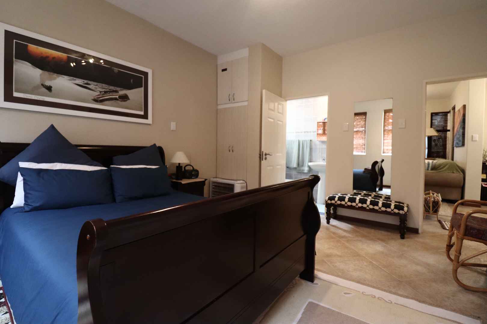 The upper level offers a private lounge opening onto a balcony with sea views to enjoy the coastal breeze. It includes two ensuite bedrooms, one of the bedrooms featuring a dressing area with built-in cupboards that walks into a spacious full bathroom.