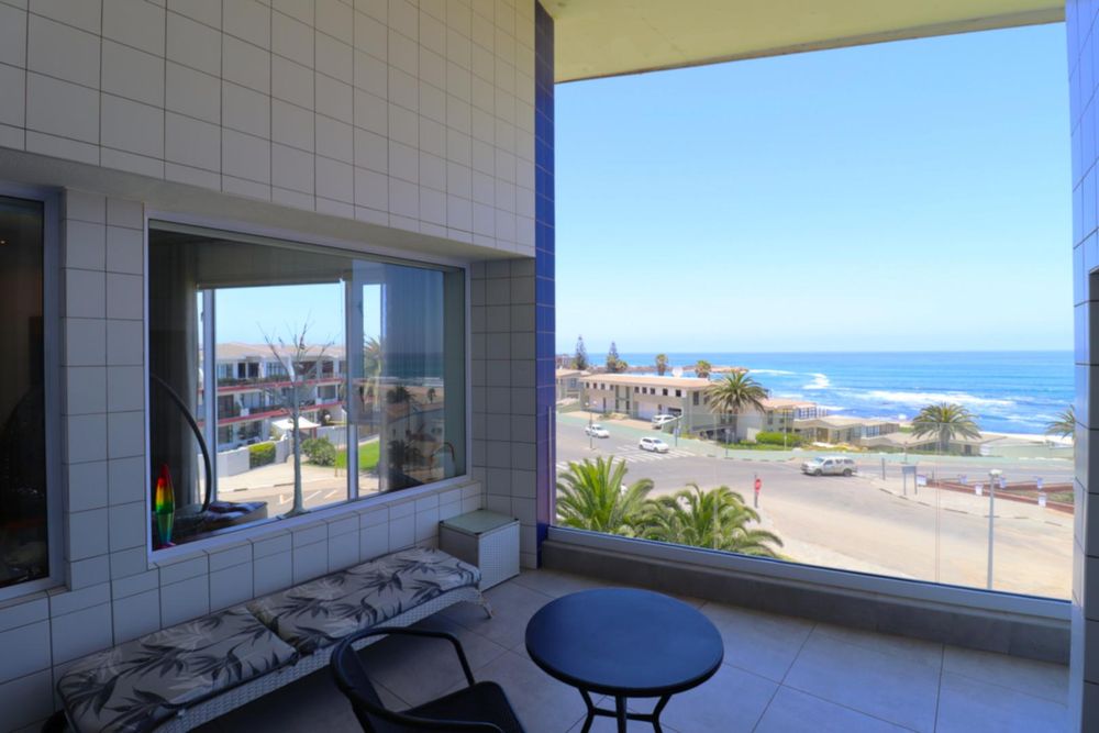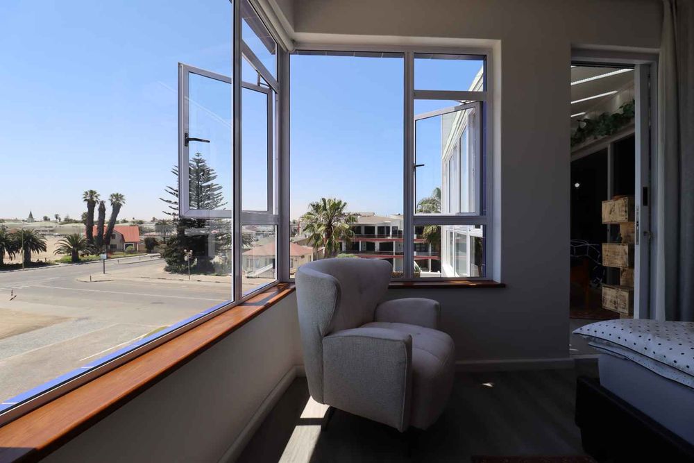 Perched above the beachfront and town centre of Swakopmund, this penthouse delivers uninterrupted views over the Atlantic Ocean and the historic German architecture below.