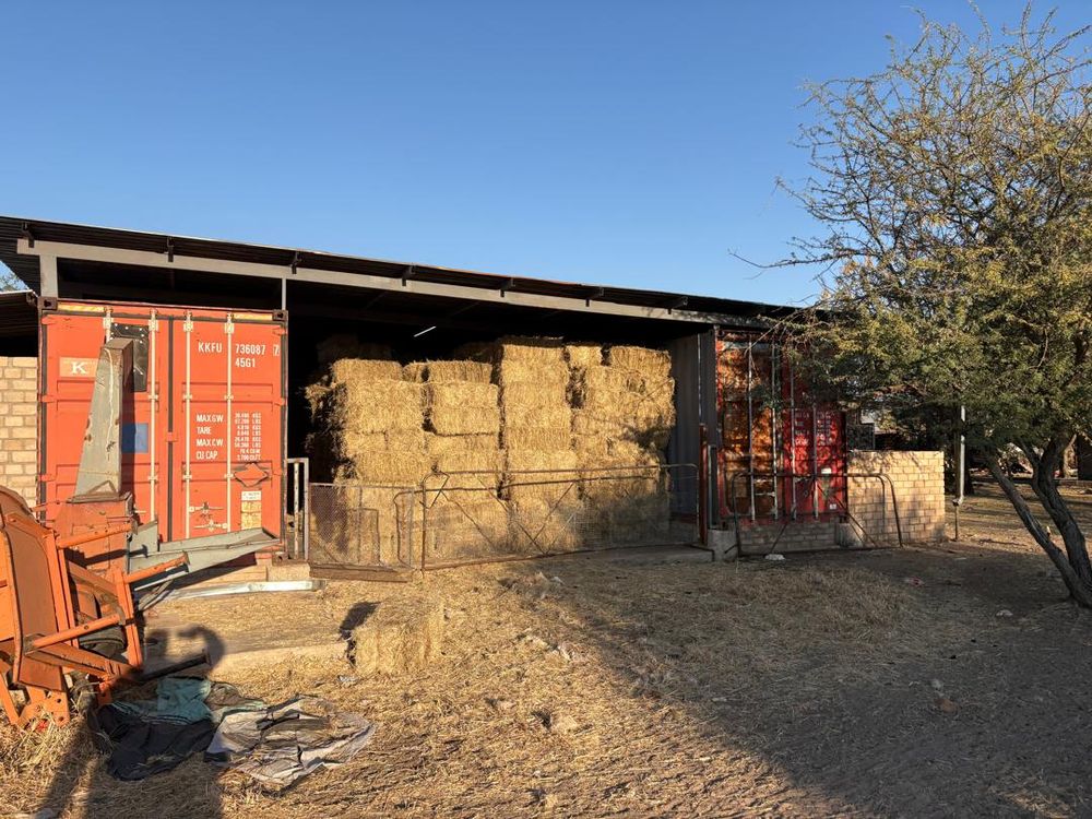 Connected to the garage building, this steel-framed shed is covered with IBR sheeting and finished with grano floors. It houses three storage containers and a utility room. Two containers have been modified for staff accommodation. The structure is equipped with 40 solar panels for the off-grid power system.