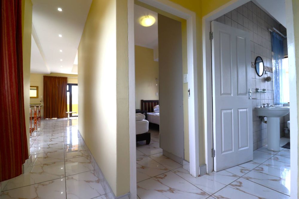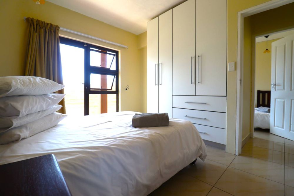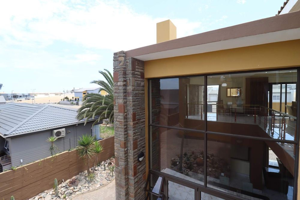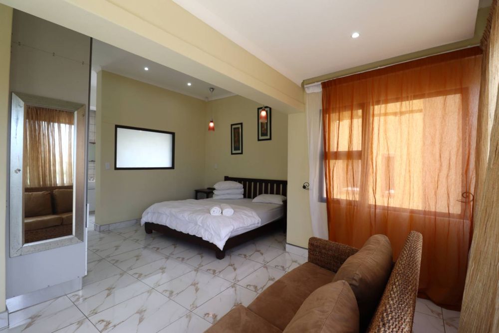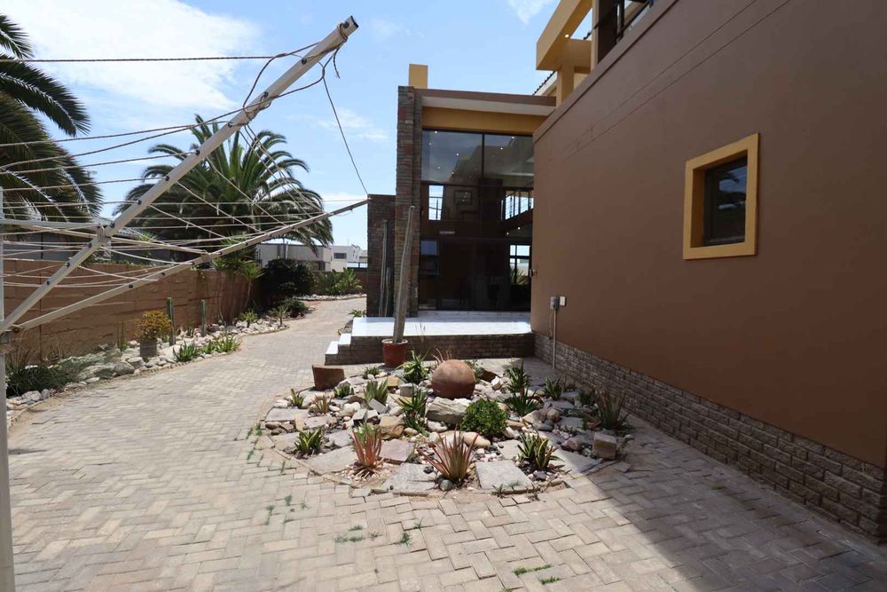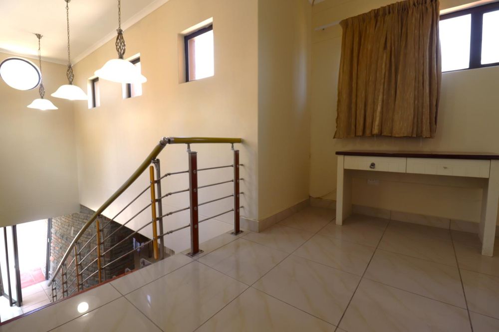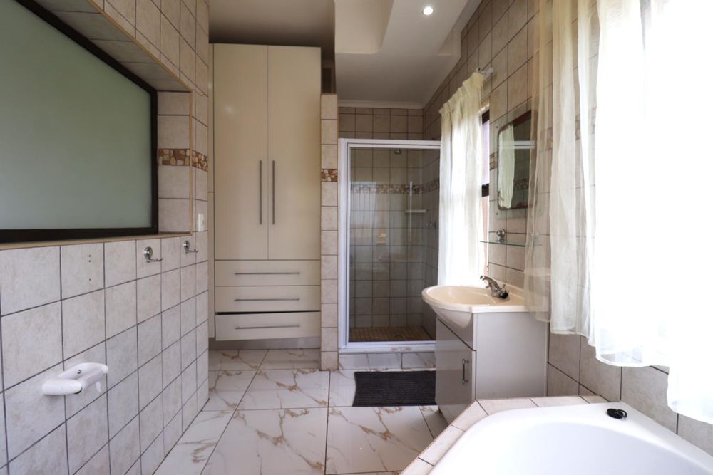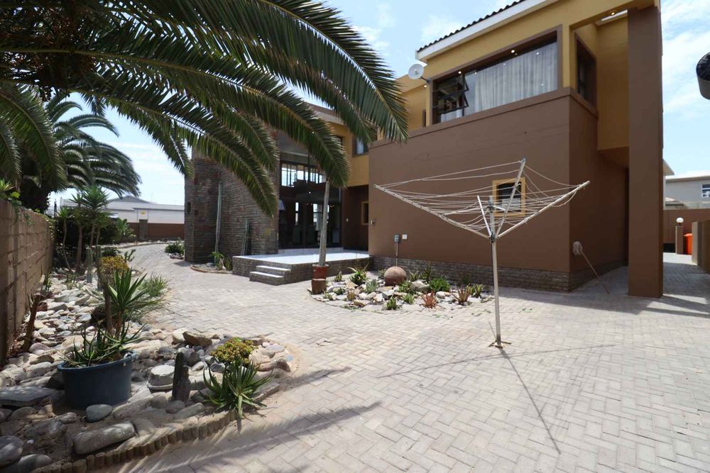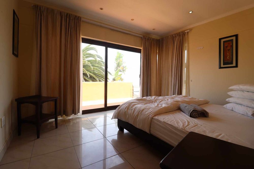 The main two-story house welcomes you into a bright lounge combined with the dining area, featuring a built-in BBQ and an open kitchen with a built-in stove, oven, and cupboards. The scullery and wash-up area connects directly to the double garage, and there is a small scullery courtyard for added convenience.