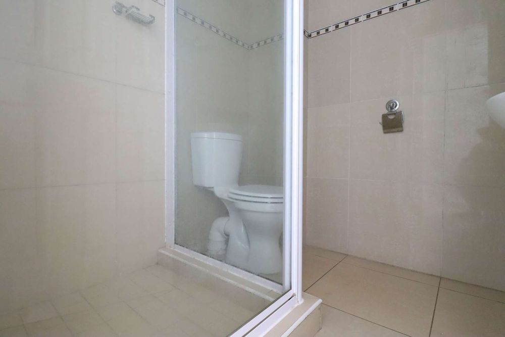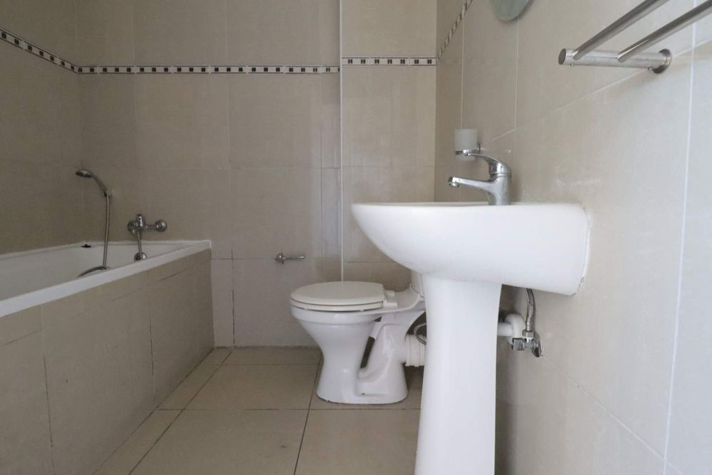 The main bedroom has its own en-suite bathroom with shower, basin, and toilet. The guest bedroom is serviced by a bathroom with a bath, basin, and toilet, making this apartment ideal for couples, friends, or small families enjoying holidays together.