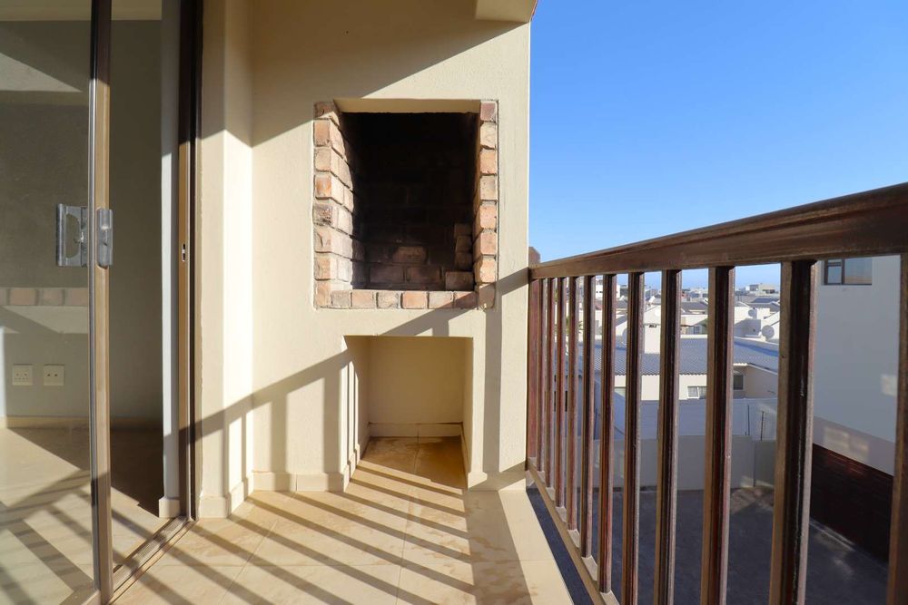 Inside, the layout is easy and comfortable. The open-plan lounge opens onto a private balcony where you can fire up the built-in BBQ and enjoy the outdoors and partial sea view. The kitchen comes with built-in cupboards, a stove, oven, and a breakfast counter.