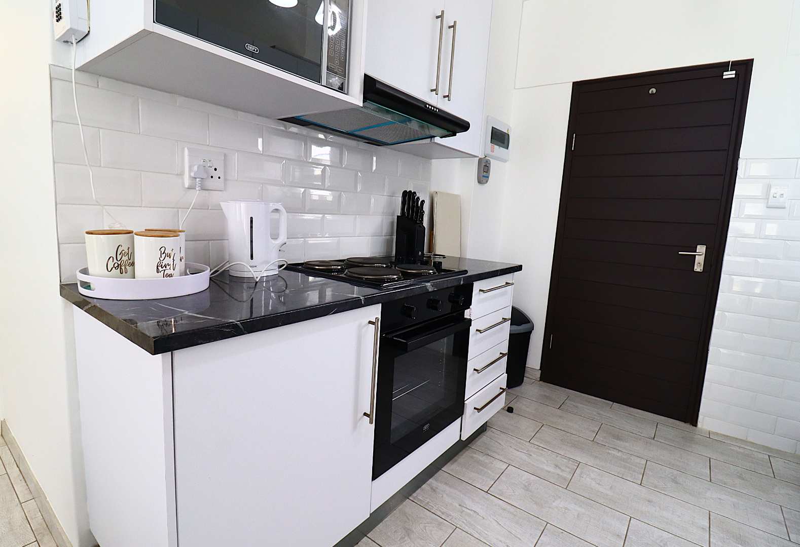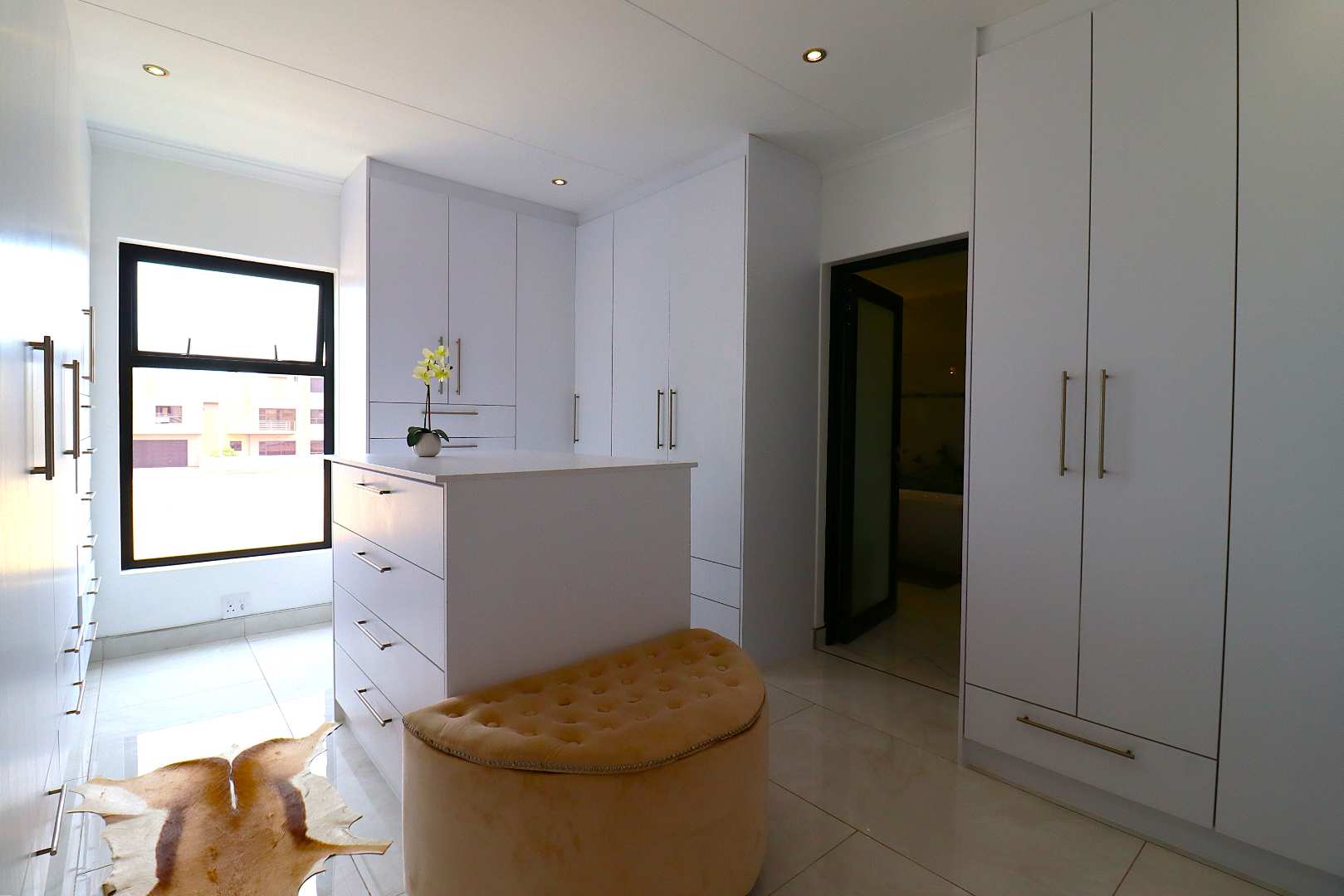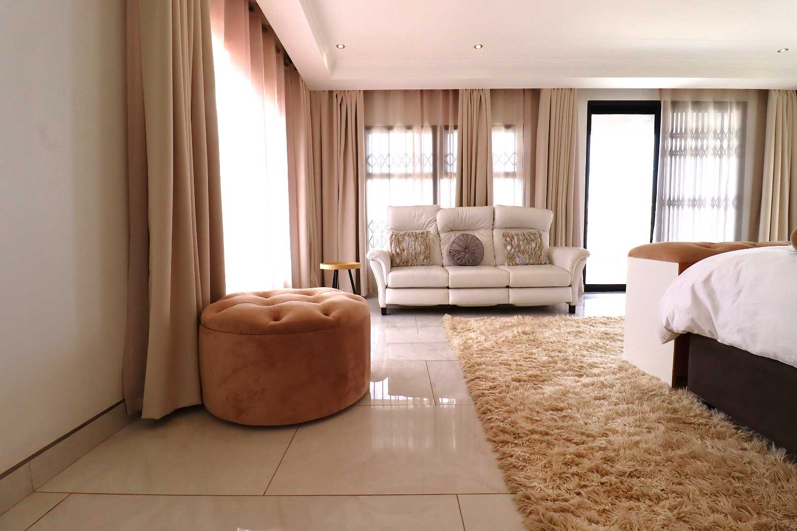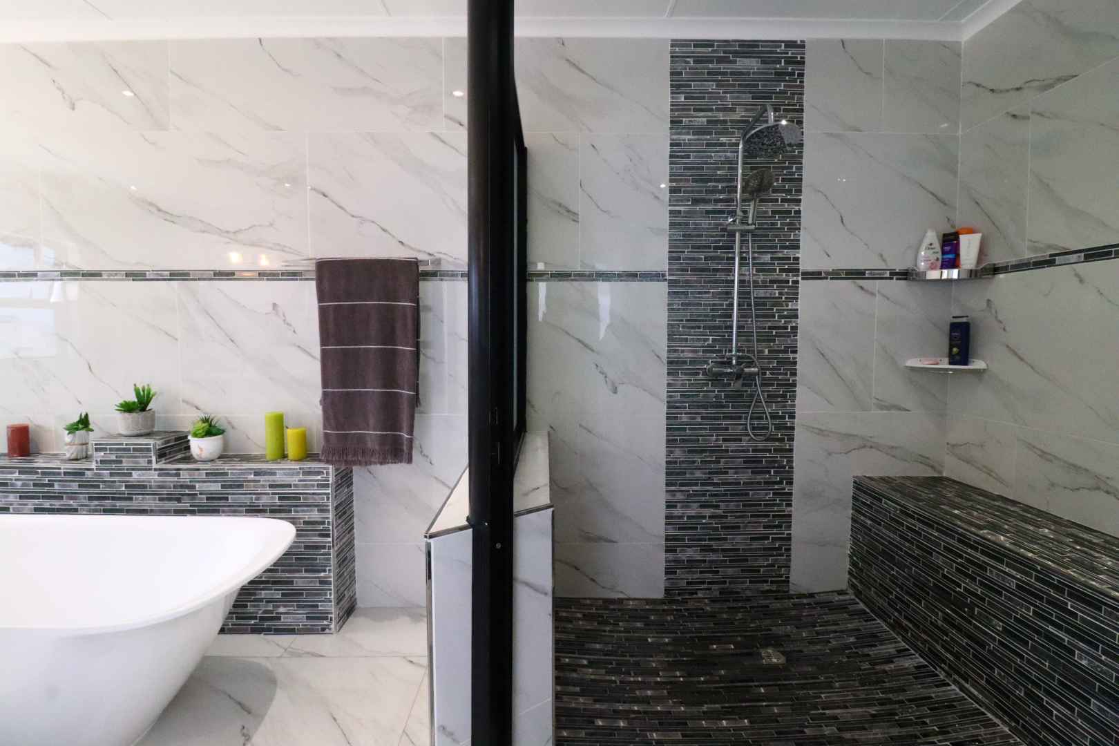 Stunning master designed and spacious kitchen that provides all the comfort you can dream with built-in cupboards, and a very well placed scullery and laundry with electrical fittings. Built-in stove with eye-level oven (90 cm) and extractor fan. The windows are fitted with stylish matt black security blinds. The round breakfast counter fits nicely to separate the dining and area from the kitchen.