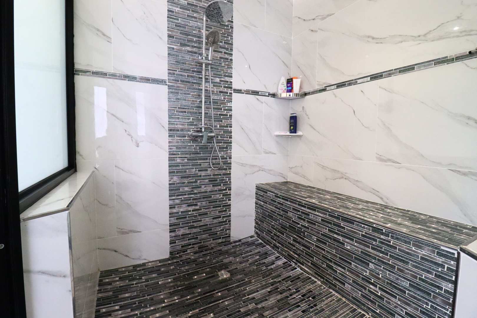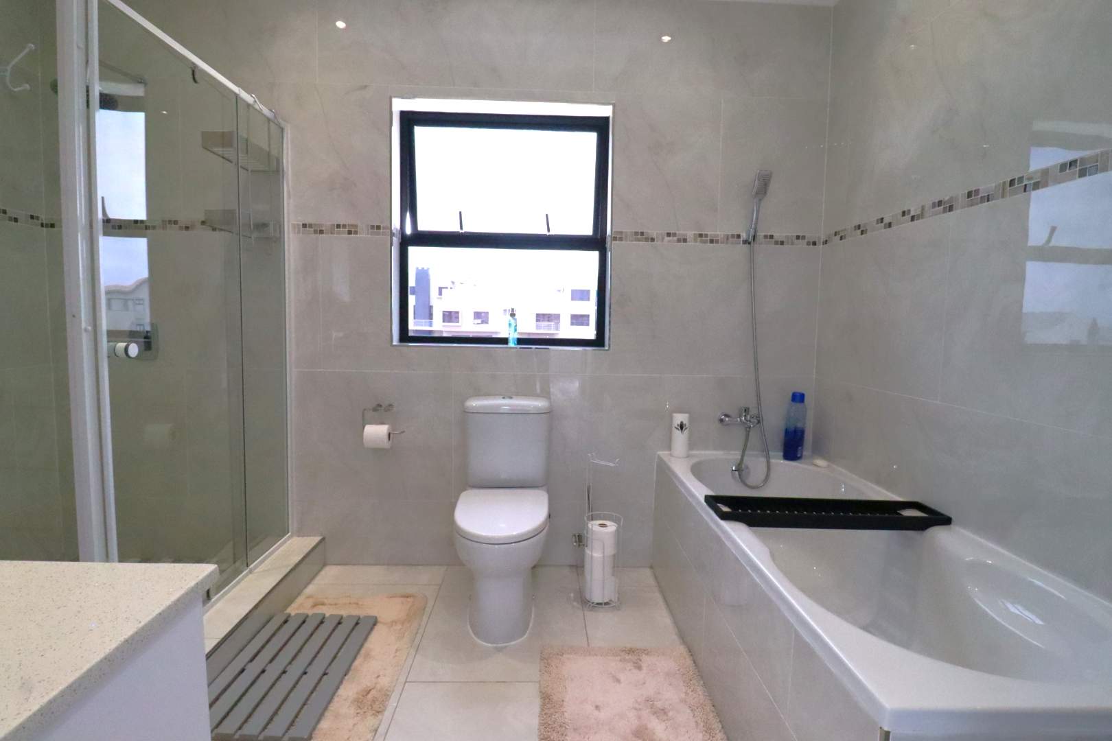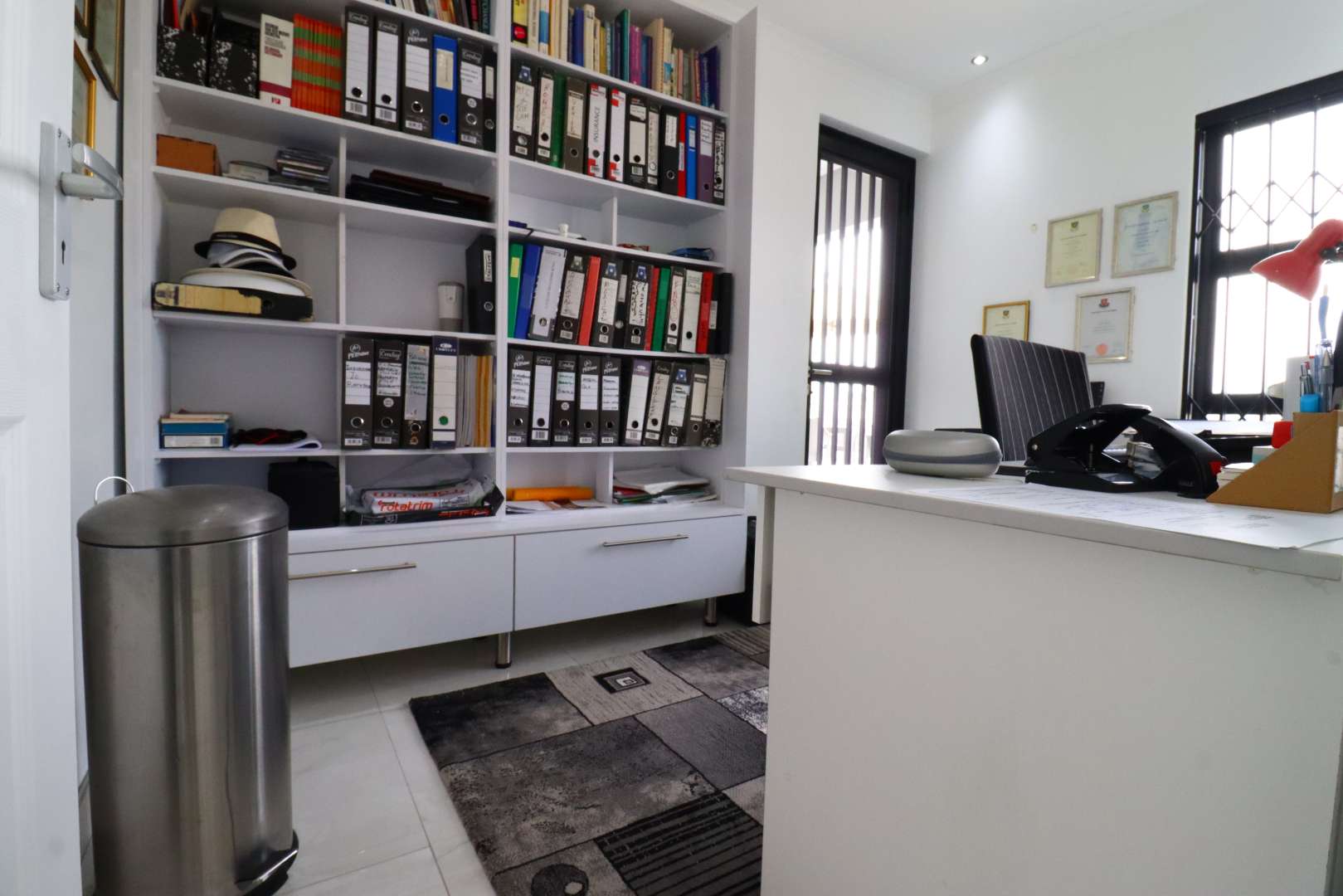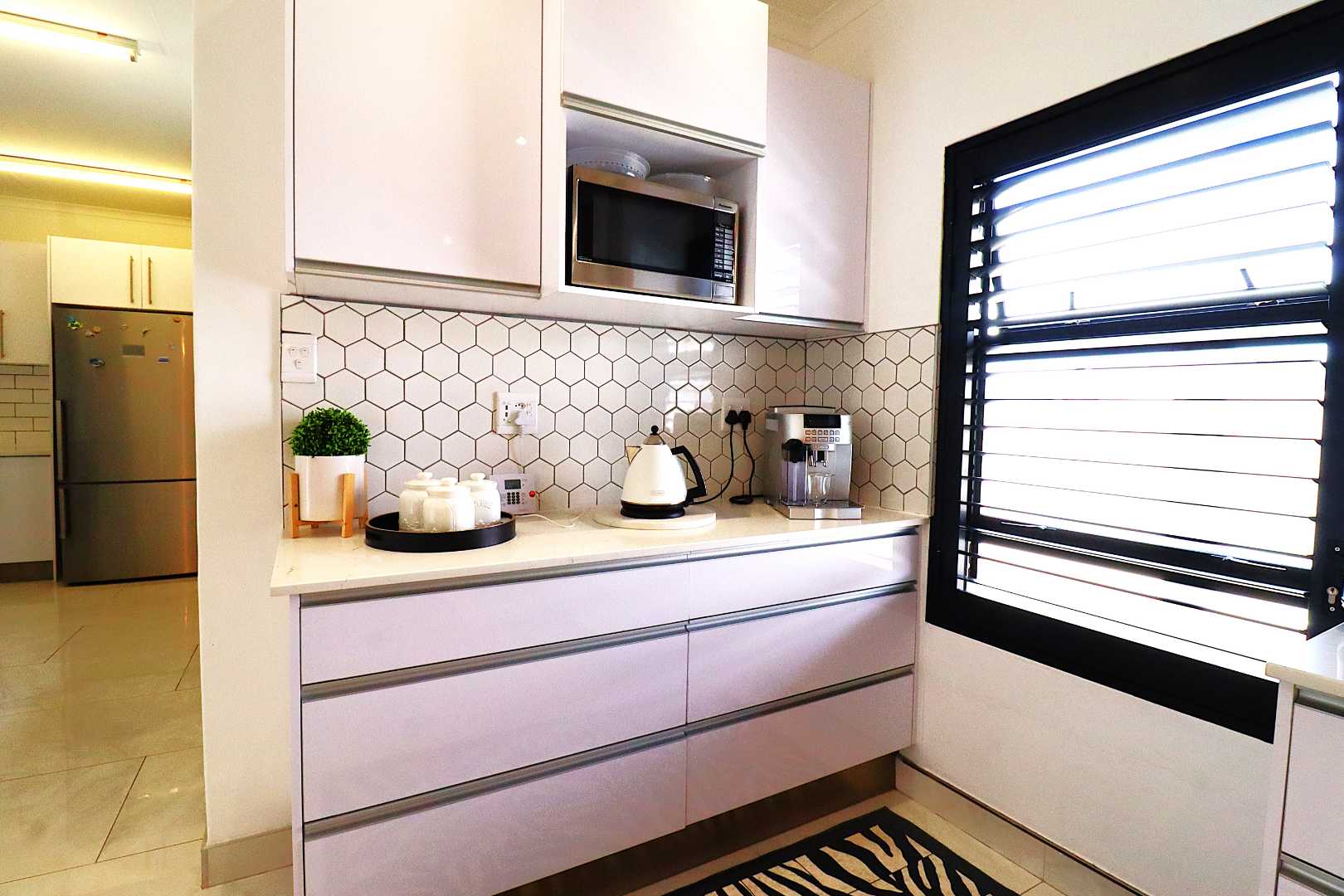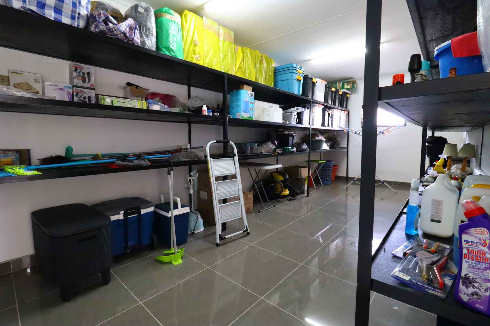Stunning master designed and spacious kitchen that provides all the comfort you can dream with built-in cupboards, and a very well placed scullery and laundry with electrical fittings. Built-in stove with eye-level oven (90 cm) and extractor fan. The windows are fitted with stylish matt black security blinds. The round breakfast counter fits nicely to separate the dining and area from the kitchen.
