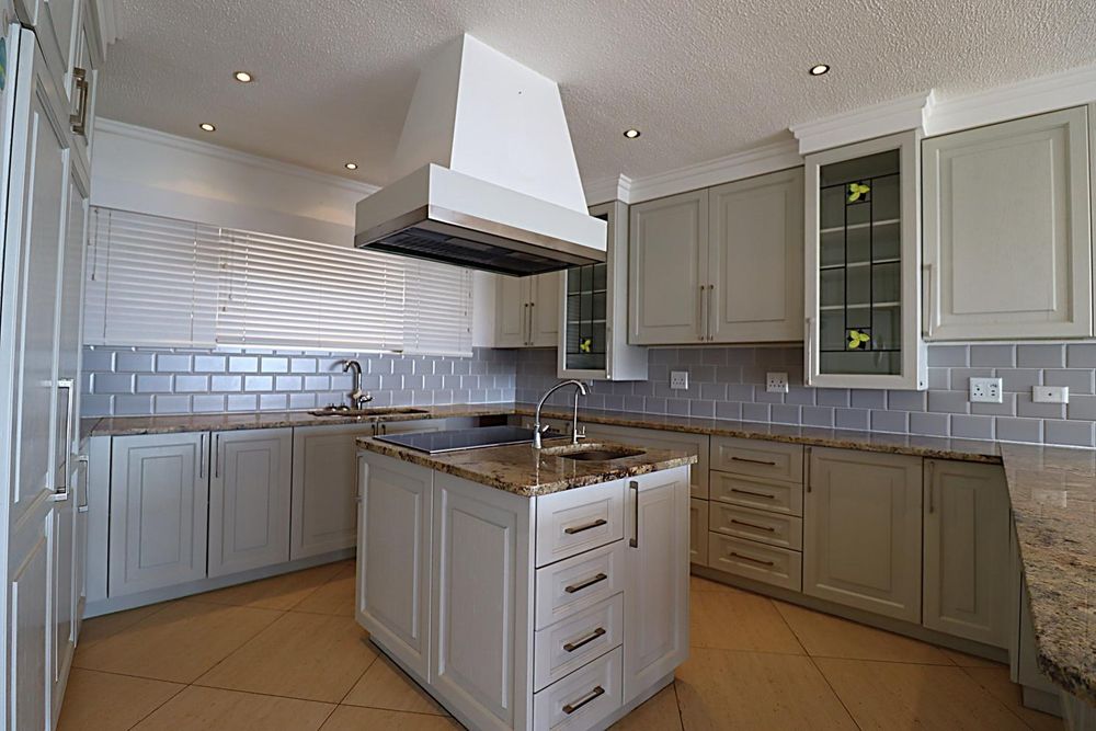 - Fully fitted kitchen with built-in cupboards, stove, oven, and breakfast counter