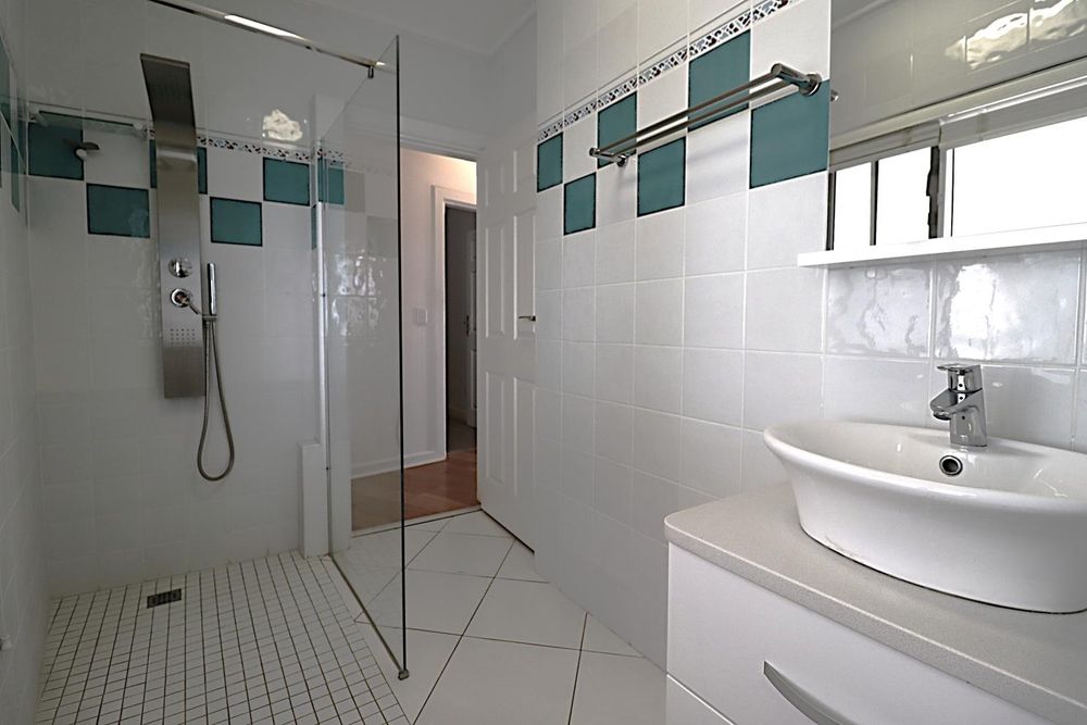 - Two guest bedrooms with built-in cupboards sharing a modern guest bathroom