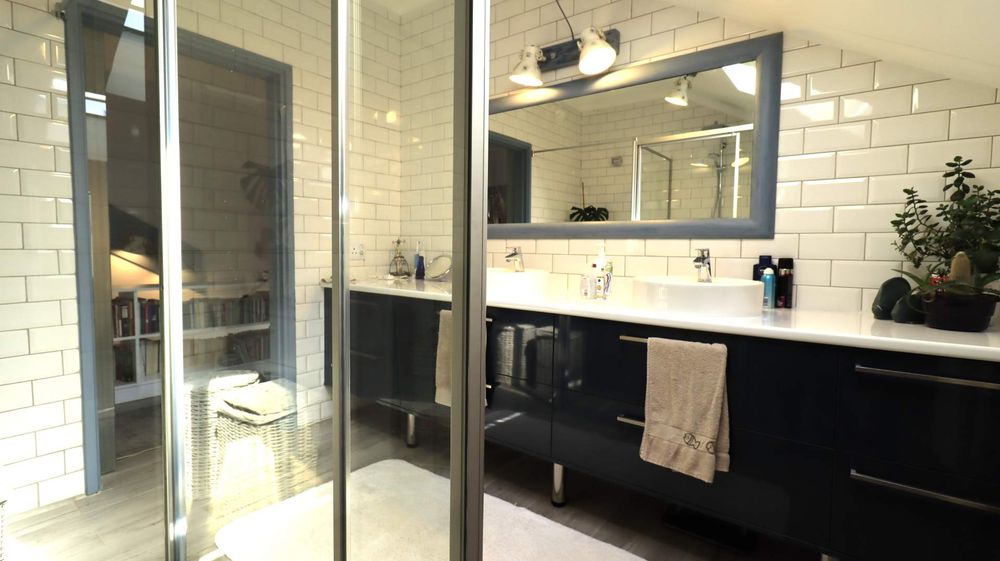 - Double garage (bigger than standard) plus additional garage divided into a single garage and office