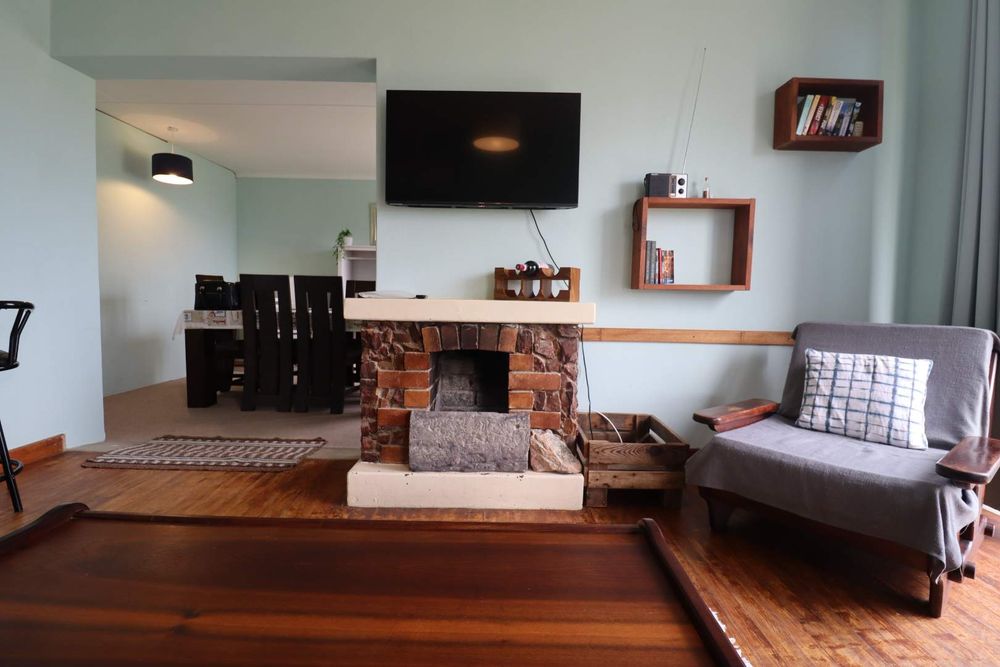The home itself has 2 bedrooms, 1 bathroom, a kitchen, dining room, and a comfortable lounge with a fireplace that opens onto a roofed veranda with sea views. There’s also a laundry, built-in BBQ, and generous front and back gardens that offer plenty of space for future extensions or a full redesign.