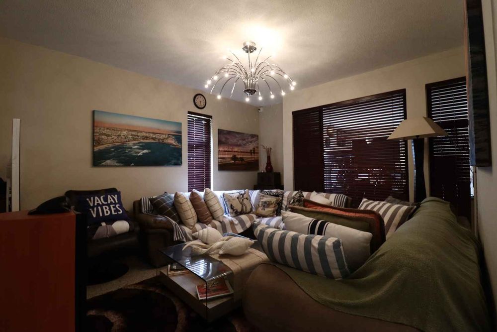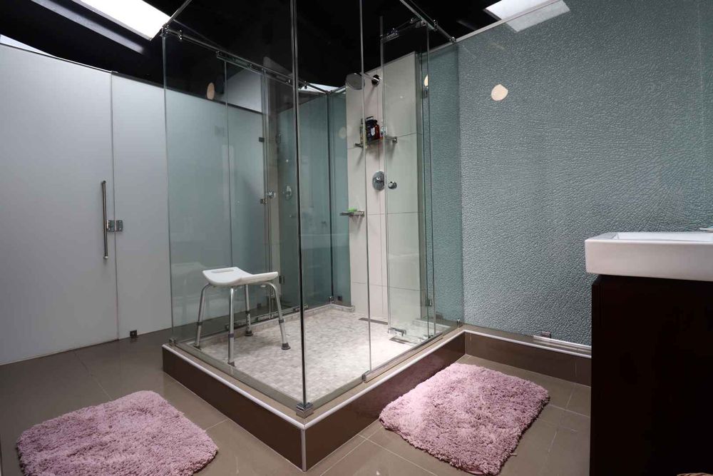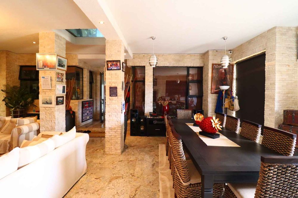 The ground floor offers a spacious guest lounge and dining space, an additional private lounge, and an indoor BBQ which is custom in most coastal homes. The small kitchen comes fitted with built-in cupboards, stove, and oven. This level also includes an ensuite bedroom with shower, a second bedroom with a separate full bathroom, a private office room, and a private garden area.