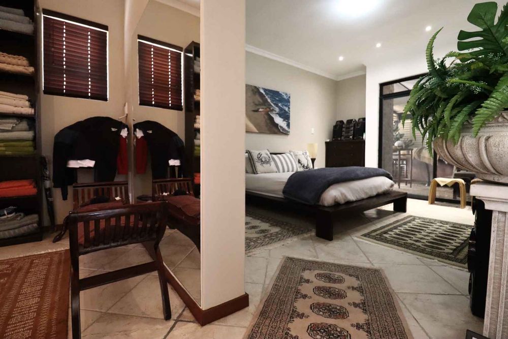 The upper level offers a private lounge opening onto a balcony with sea views to enjoy the coastal breeze. It includes two ensuite bedrooms, one of the bedrooms featuring a dressing area with built-in cupboards that walks into a spacious full bathroom.